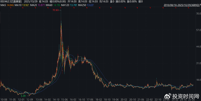 在二级市场,2014年至2015年上半年,嘉事堂曾上演一波亮眼行情,股价由十几元攀升至80多元,但此后震荡下行、近年来也一直在低位徘徊。截至今年10月28日,公司股价报收于14.03元/股(不复权),市值不到41亿元。曾经的A股“大牛股”,荣光不再。