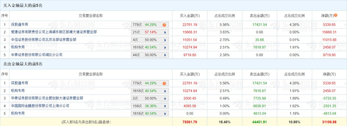 龙虎榜丨沪电股份涨停,呼家楼净买入1.1亿元