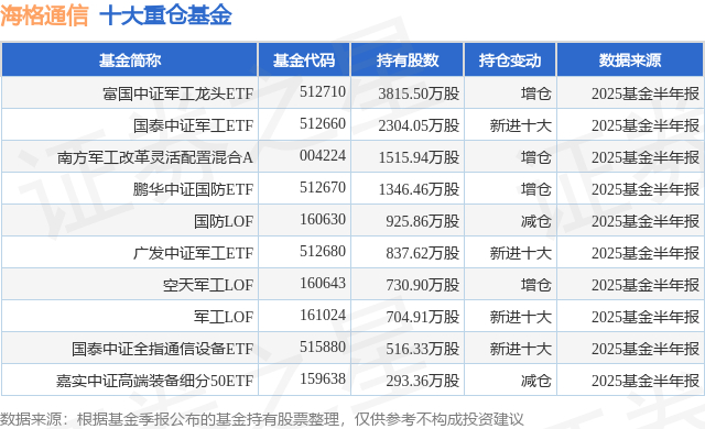 根据2025基金半年报公募基金重仓股数据,重仓该股的公募基金共37家,其中持有数量最多的公募基金为富国基金的富国中证军工龙头ETF。富国中证军工龙头ETF目前规模为119.14亿元,最新净值0.7351(9月2日),较上一交易日下跌1.95%,近一年上涨43.91%。该公募基金现任基金经理为王乐乐 牛志冬。王乐乐在任的基金产品包括:富国央企创新ETF,管理时间为2019年9月20日至今,期间收益率为75.68%;富国中证消费50ETF,管理时间为2019年10月14日至今,期间收益率为21.56%;富国中证科技50策略ETF,管理时间为2019年11月15日至今,期间收益率为82.85%。牛志冬在任的基金产品包括:富国中证移动互联网指数(LOF)A,管理时间为2015年5月13日至今,期间收益率为-6.2%;富国中证医药主题指数增强A,管理时间为2016年11月11日至今,期间收益率为57.16%;富国中证娱乐主题指数增强(LOF)A,管理时间为2017年3月13日至今,期间收益率为-19.5%;