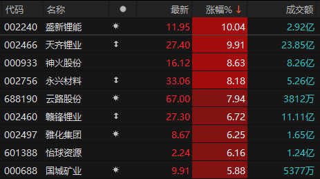 上证报中国证券网讯 9月24日午后,有色金属板块表现强势。截至13时47分,盛新锂能、天齐锂业涨停。神火股份、永兴材料涨超8%,云路股份涨逾7%,赣锋锂业、雅化集团等跟涨。