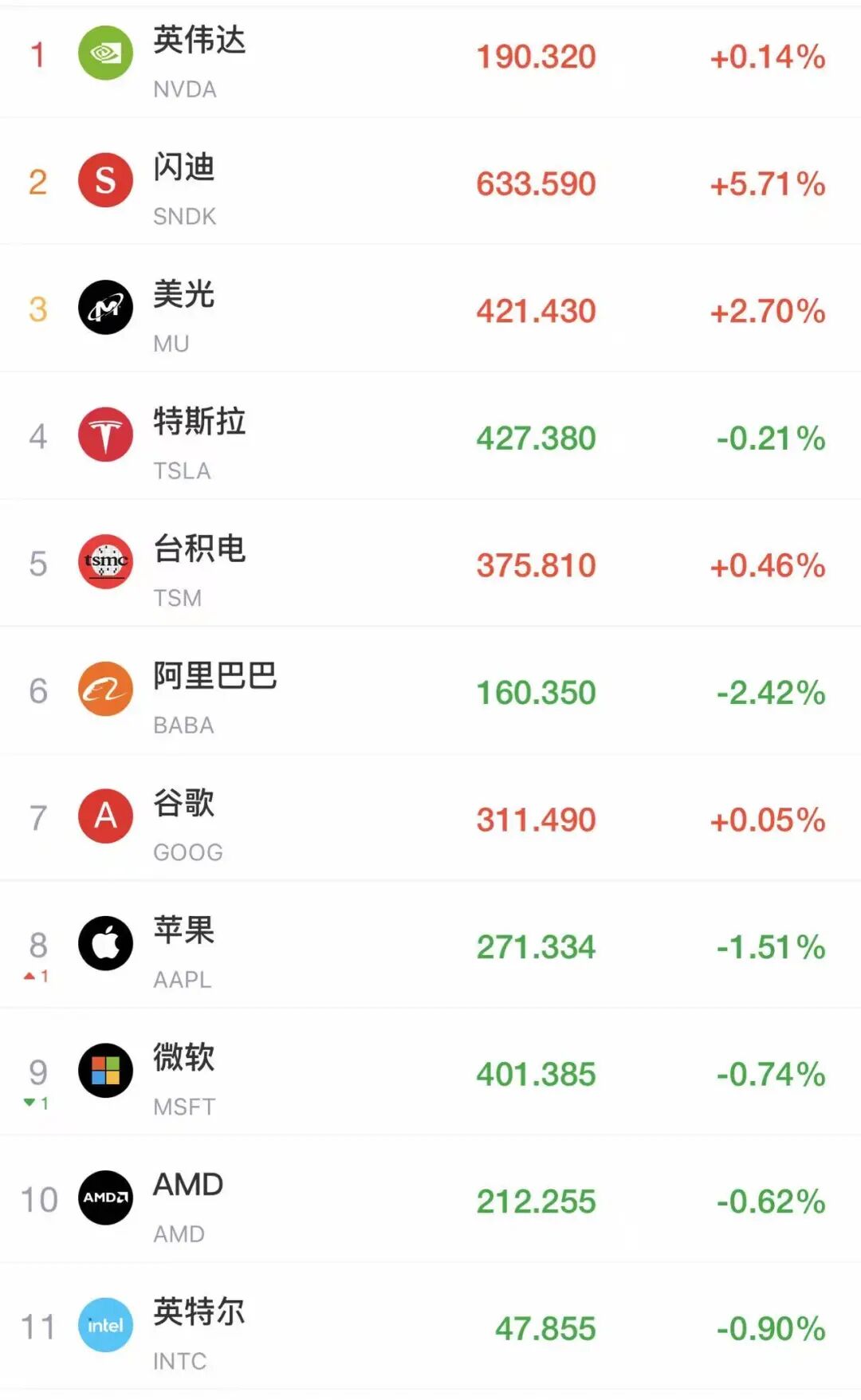 科技七姊妹走势分化,英伟达、谷歌微涨0.1%上下,特斯拉、微软、Meta、亚马逊、苹果下跌。其中苹果一度接近2%,市值跌破4万美元大关。美股存储概念股大涨后回落,截至发稿闪迪涨超5%,美光科技涨超2%。