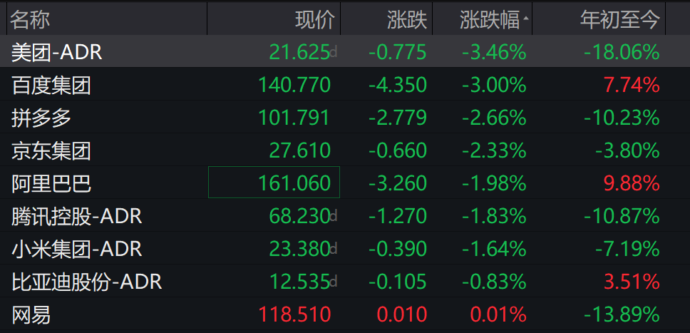中概股普跌,纳斯达克中国金龙指数跌近2%,虎牙跌超7%,腾讯音乐跌超6%、贝壳跌超4%、爱奇艺跌超3%、京东和阿里巴巴跌约2。