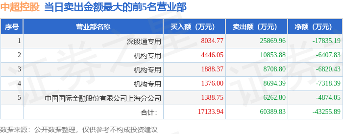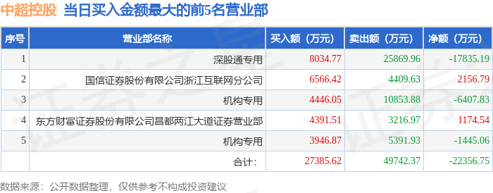 1月5日中超控股(002471)龙虎榜数据:机构净卖出2.2亿元,北向资金净卖出1.78亿元