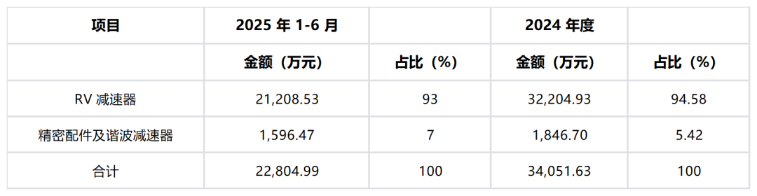 1.主营业务:从事机器人关节高精密减速器的研发、设计、生产和销售,为客户提供覆盖 3-1,000KG 负载机器人所需的高精密减速器整体方案,核心产品为 RV 减速器,广泛应用于机器人、工业自动化等高端制造领域。
