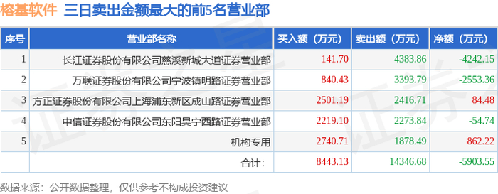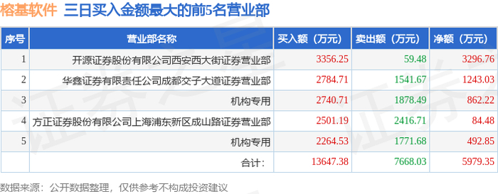10月15日榕基软件(002474)龙虎榜数据:机构净买入1355.07万元(3日)