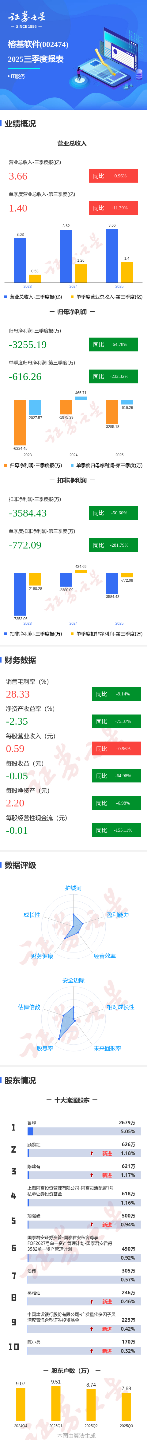 图解榕基软件三季报:第三季度单季净利润同比下降232.32%