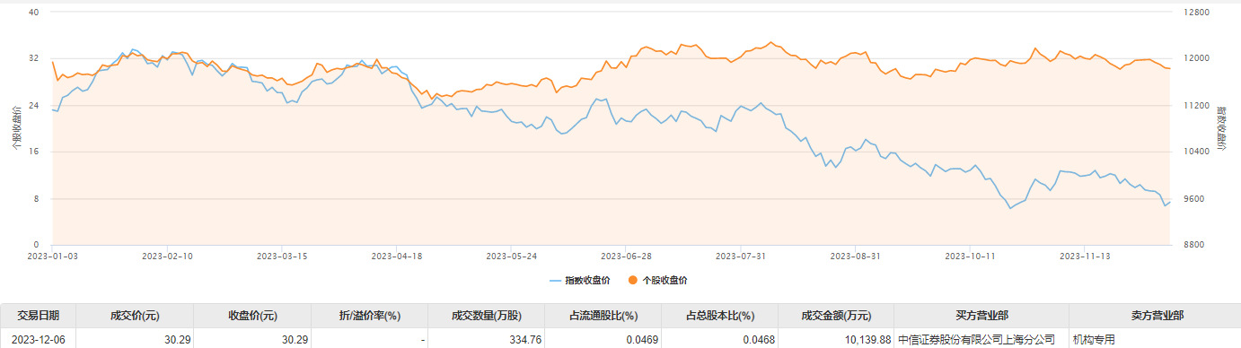 12月6日现1笔平价大宗交易,成交额1.01亿元,卖方为机构席位,买方为