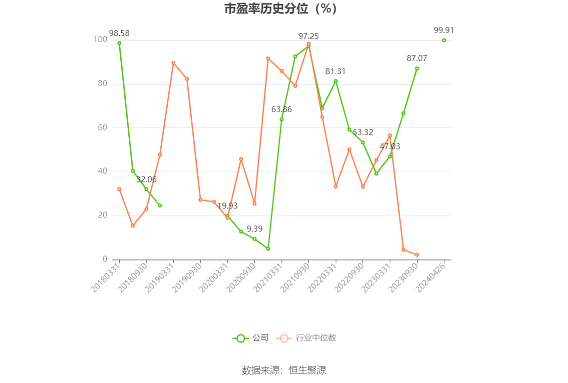 市盈率为负时,不显示当期分位数,会导致折线图中断。