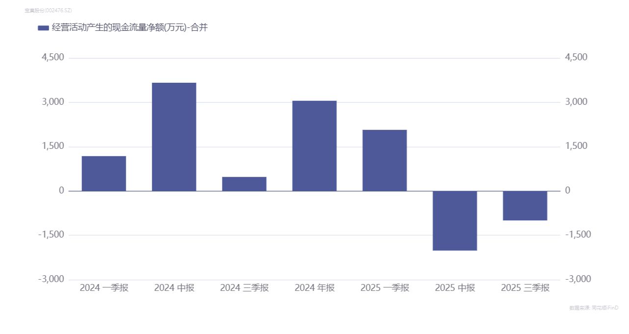 尽管净利润表现亮眼,但宝莫股份的现金流状况却呈现出另一番景象。2025年前三季度,公司经营活动产生的现金流量净额为-996.44万元,同比大幅下降309.41%。这一趋势在2025年上半年就已显现,当时经营活动现金流净额为-2015.99万元,同比下降155.02%,主要原因是客户账期延长。