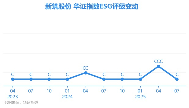 日前,华证指数公布了新一期(2025年7月31日)的ESG评级结果,新筑股份(002480.SZ)获得C评级(华证指数评级为C起至AAA九档,C为最低档,AAA为其最高一级评级/AA为其第二档),上一期(2025年4月30日)ESG评级为CCC。本期ESG评级在45家交通基本设施行业A股上市公司中排名第40(上一期排名第39)。
