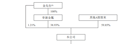 金先生通过阜新金胤持股38.93%,直接持股1.21%;其他A股股东持股59.85%。
