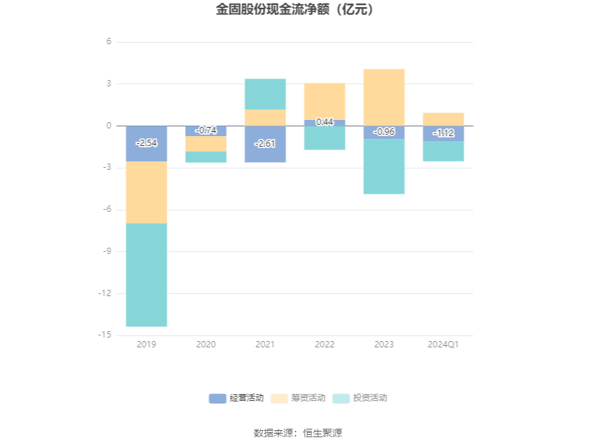 2024年第一季度,公司经营活动现金流净额为-1.12亿元,同比增加2123.17万元;筹资活动现金流净额9352.30万元,同比减少6.52亿元,主要系报告期内公司短期借款偿还及流入资金减少所致;投资活动现金流净额-1.41亿元,上年同期为-1.54亿元。