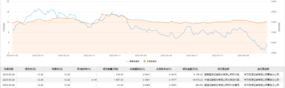 荣盛石化8月29日大宗交易成交2097万股,成交额2.57亿元,占当日总成交额的36.2%,成交均价12.26元,较市场收盘价12.28元折价0.16%,其中最高成交价12.28元,最低成交价12.26元。