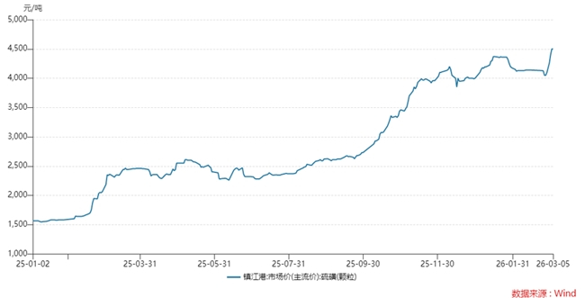实际上,硫磺超级牛市已持续超过2年时间,累计涨幅超470%。自2月28日中东地缘冲突升级以来,硫磺港口主流成交价累计涨幅超12%。