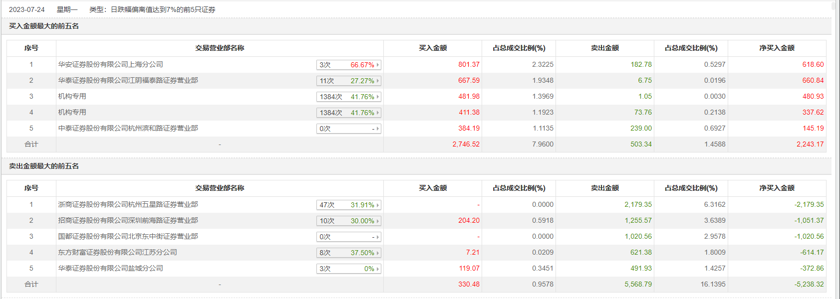 华泰证券江阴福泰路证券营业部分别买入801.37万元、667.59万元。