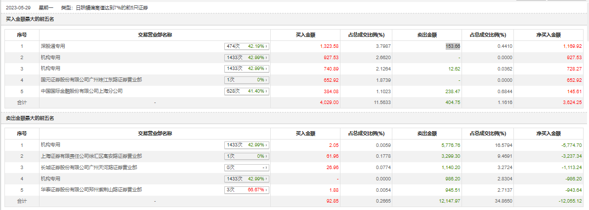 5月29日,鹏都农牧今日跌停,龙虎榜数据显示,上榜营业部席位全天成交1.67亿元,占当日总成交金额比例为47.86%。其中,买入金额为4121.85万元,卖出金额为1.26亿元,合计净卖出8430.87万元。