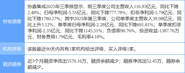 2025年10月13日,太平洋研究员刘强,钟欣材发布了对协鑫集成的研报《协鑫集成2025年中报点评:出货保持行业前列,2025年上半年盈利承压》,该研报对协鑫集成给出“买入”评级。研报中预计公司2025-2027年营业收入分别为156.15亿元、203.48亿元、239.16亿元;归母净利润分别为-3.89亿元、2.08亿元、4.08亿元,对应EPS分别为-0.07元、0.04元、0.07元,维持“买入”评级。证券之星数据中心根据近三年发布的研报数据计算,该研报作者对此股的盈利预测准确度为9.72%。