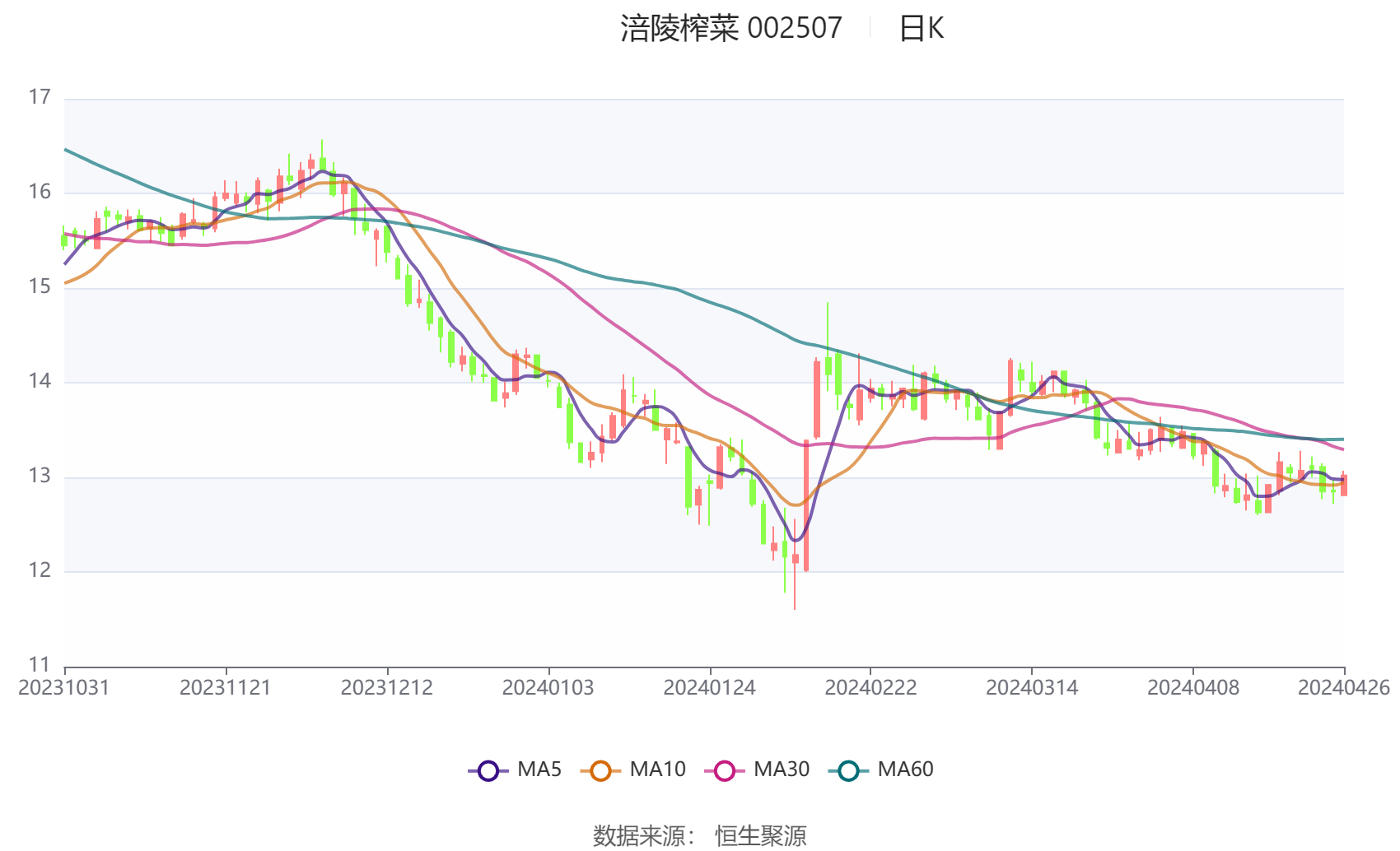 涪陵榨菜:2024年第一季度净利润2.72亿元 同比增长3.93%
