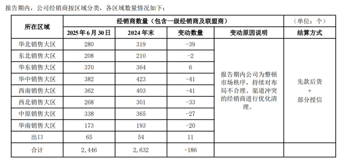 到了今年上半年,公司经销商规模仍处于缩减态势。截至今年上半年末,公司经销商数量缩减至2446家,相较于年初减少了186家。对此,涪陵榨菜解释称公司为整顿市场秩序,持续对布局不合理、渠道冲突的经销商进行优化清理。