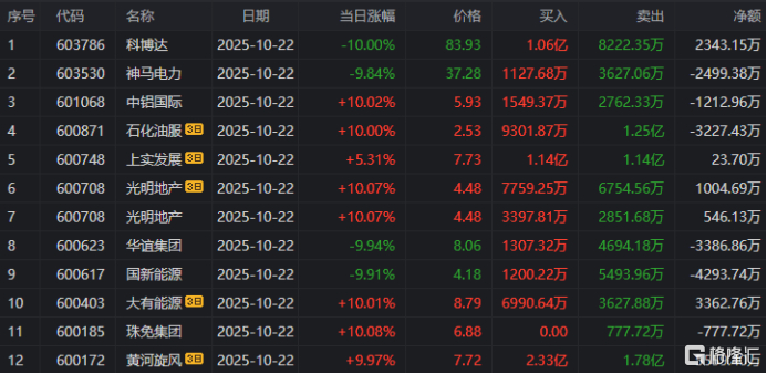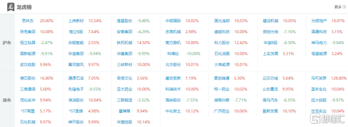 高位股方面,大有能源9天8板,*ST南置9天7板,*ST万方8天6板,*ST奥维7天5板,睿能科技5天4板,ST中迪4连板,*ST春天5天3板,山东墨龙4天3板,北方股份、黄河旋风等3连板。