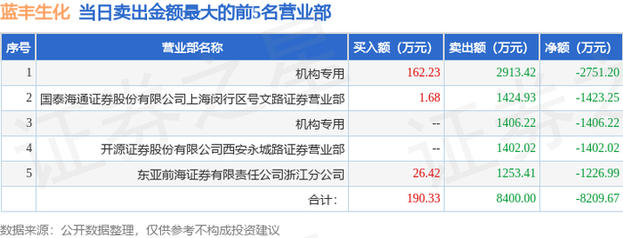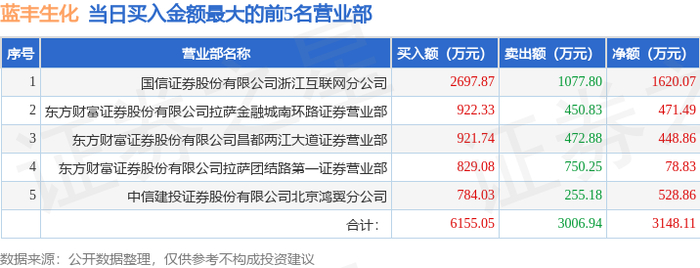 10月23日蓝丰生化(002513)龙虎榜数据:机构净卖出4157.42万元