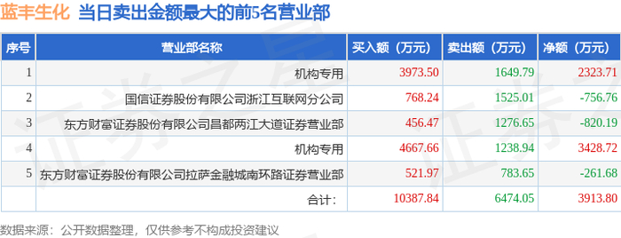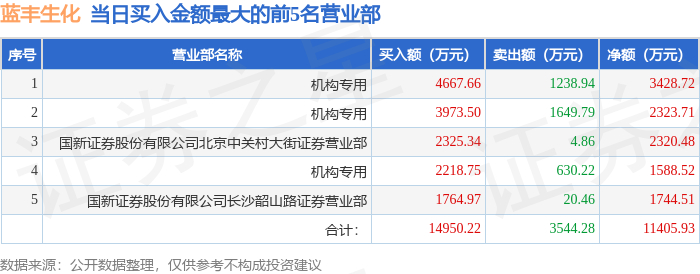 11月7日蓝丰生化(002513)龙虎榜数据:机构净买入7340.95万元