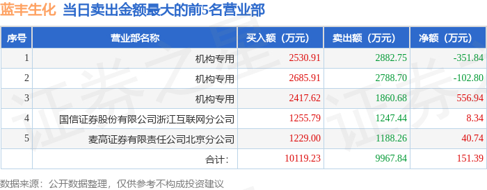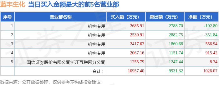 11月11日蓝丰生化(002513)龙虎榜数据:机构净买入1017.73万元