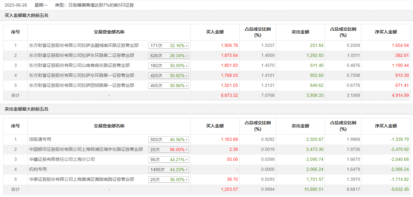 具体来看,机构合计净卖出2066.24万元。此外,东方财富证券拉萨金融城南环路证券营业部、东方财富证券拉萨东环路第二证券营业部分别买入1906.78万元、1875.64万元;深股通专用、中国银河证券上海杨浦区靖宇东路证券营业部分别卖出2503.67万元、2473.30万元。