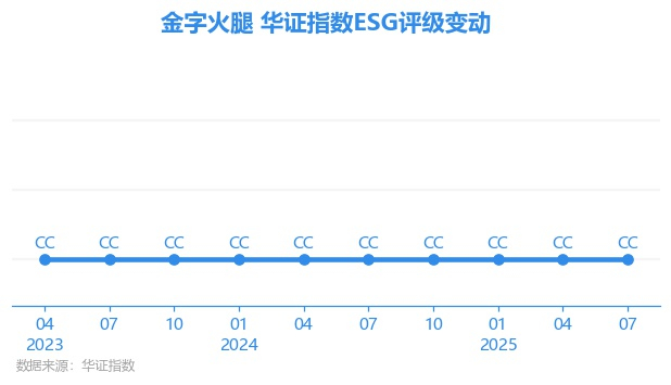 日前,华证指数公布了新一期(2025年7月31日)的ESG评级结果,金字火腿(002515.SZ)获得CC评级(华证指数评级为C起至AAA九档,C为最低档,AAA为其最高一级评级/AA为其第二档),上一期(2025年4月30日)ESG评级为CC。本期ESG评级在156家食品行业A股上市公司中排名第90(上一期排名第129)。