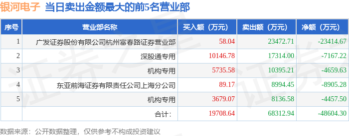 1月13日银河电子(002519)龙虎榜数据:机构净卖出4717.98万元,北向资金净卖出7167.22万元