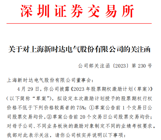 中国网财经5月8日讯 新时达日前因2023年股票期权激励计划(下称“激励计划”)收到来自深交所的关注函。