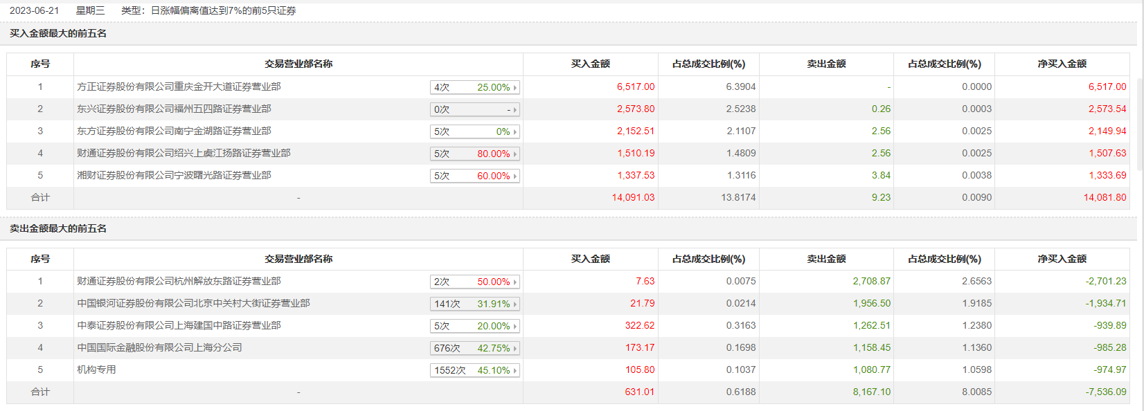 具体来看,机构买入105.8万元,卖出1080.77万元,合计净卖出974.97万元。此外,方正证券重庆金开大道证券营业部、东兴证券福州五四路证券营业部分别买入6517.00万元、2573.80万元;财通证券杭州解放东路证券营业部、中国银河证券北京中关村大街证券营业部分别卖出2708.87万元、1956.50万元。