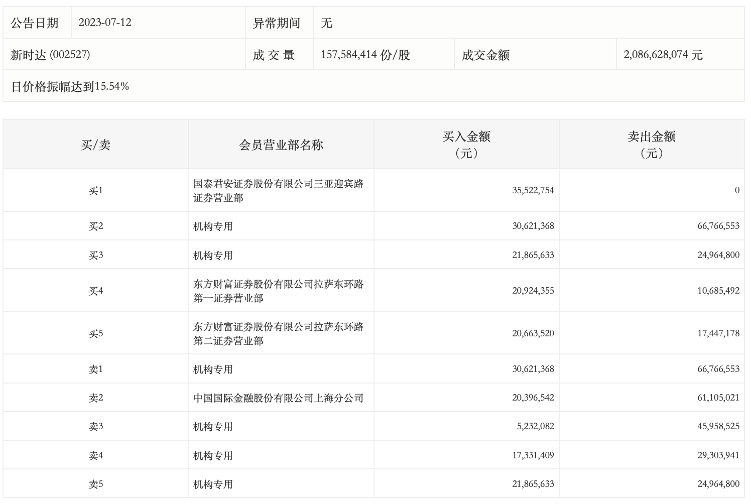 7月12日,新时达今日跌8.42%,龙虎榜数据显示,上榜营业部席位全天成交4.29亿元,占当日总成交金额比例为20.55%。其中,买入金额为1.73亿元,卖出金额为2.56亿元,合计净卖出8367.38万元。