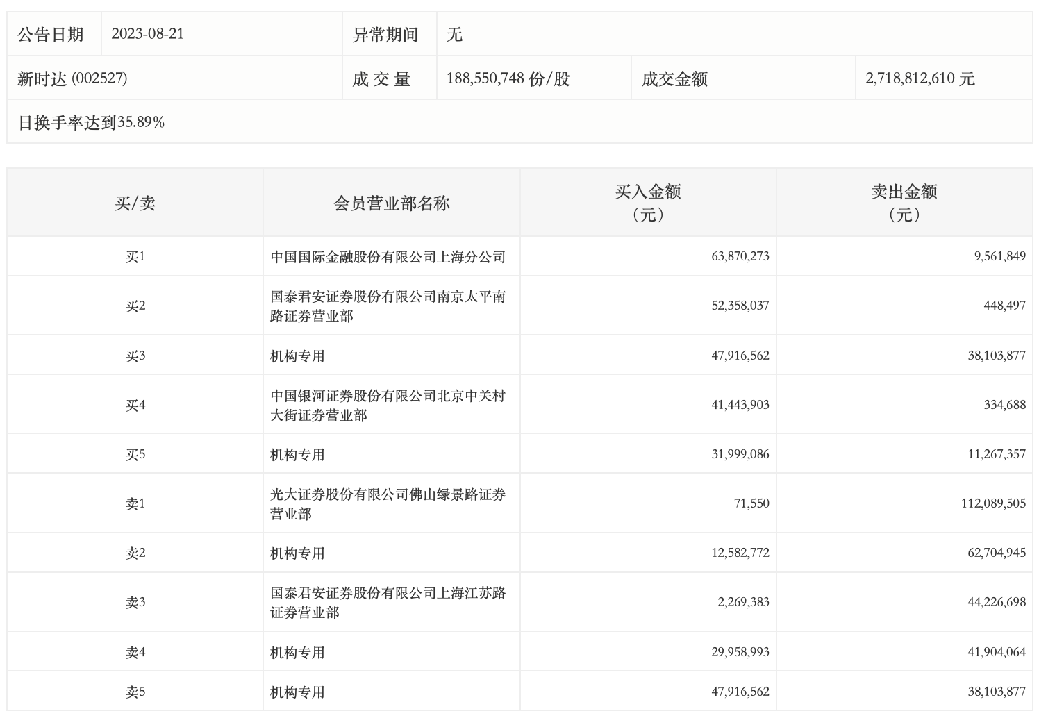 8月21日,新时达今日涨1.1%,龙虎榜数据显示,上榜营业部席位全天成交6.03亿元,占当日总成交金额比例为22.18%。其中,买入金额为2.82亿元,卖出金额为3.21亿元,合计净卖出3817.09万元。
