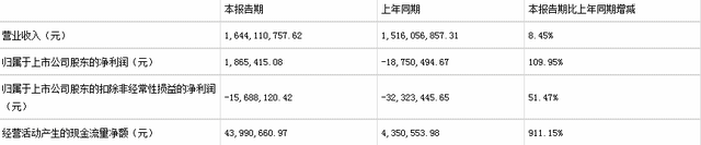 本期报告显示,公司上半年实现营业收入16.44亿元,同比增长8.45%;归母净利润为186.54万元,同比大幅增长109.95%,利润自2024年以来首次实现扭亏为盈。