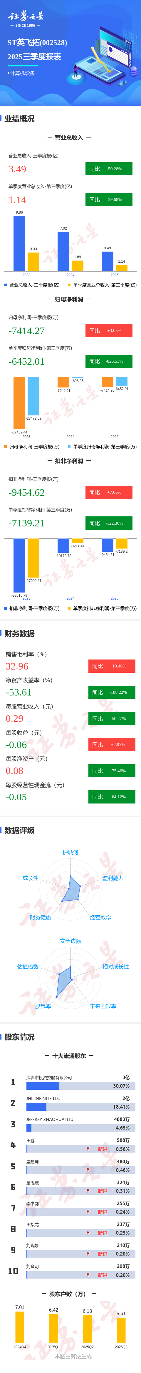 图解ST英飞拓三季报:第三季度单季净利润同比下降826.54%