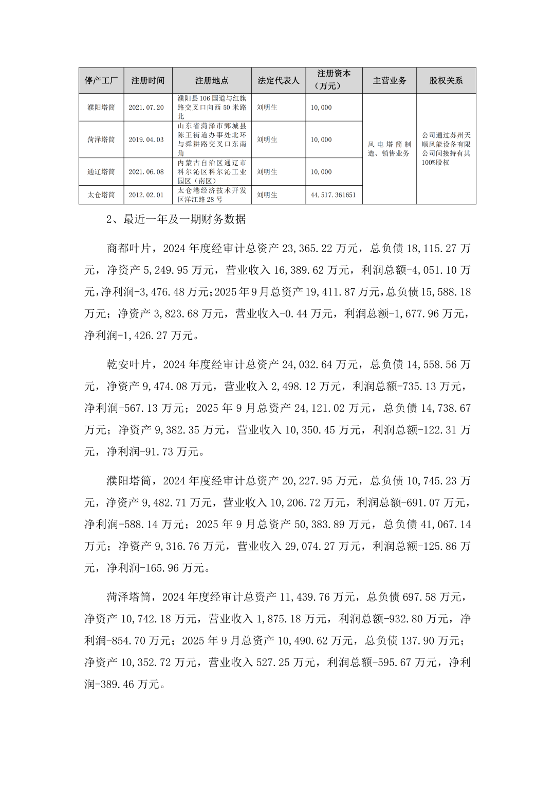 风芒能源获悉,1月30日,天顺风能(苏州)股份有限公司(以下简称“天顺风能)发布《关于部分子公司停产的公告》。