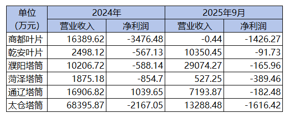 对于停产原因,天顺风能表示,随着公司装备制造业务“陆转海”战略的深入推进,公司锚定海上风电这一高潜力赛道,推动陆上风能装备制造业务板块开展战略适配性调整:主动收缩业务规模,聚焦优质订单筛选,强化经营性现金流精细化管理,筑牢企业长期稳健运行的坚实基础。鉴于停产子公司所处区域市场竞争日益激烈,为进一步优化公司整体资源配置,集中优势力量发展海上风电等核心业务,全面提升运营效率及盈利能力,经公司审慎论证并严格履行相应决策程序后,决定对上述全资子公司实施长期停产安排。