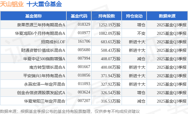 重仓天山铝业的前十大公募基金请见下表: