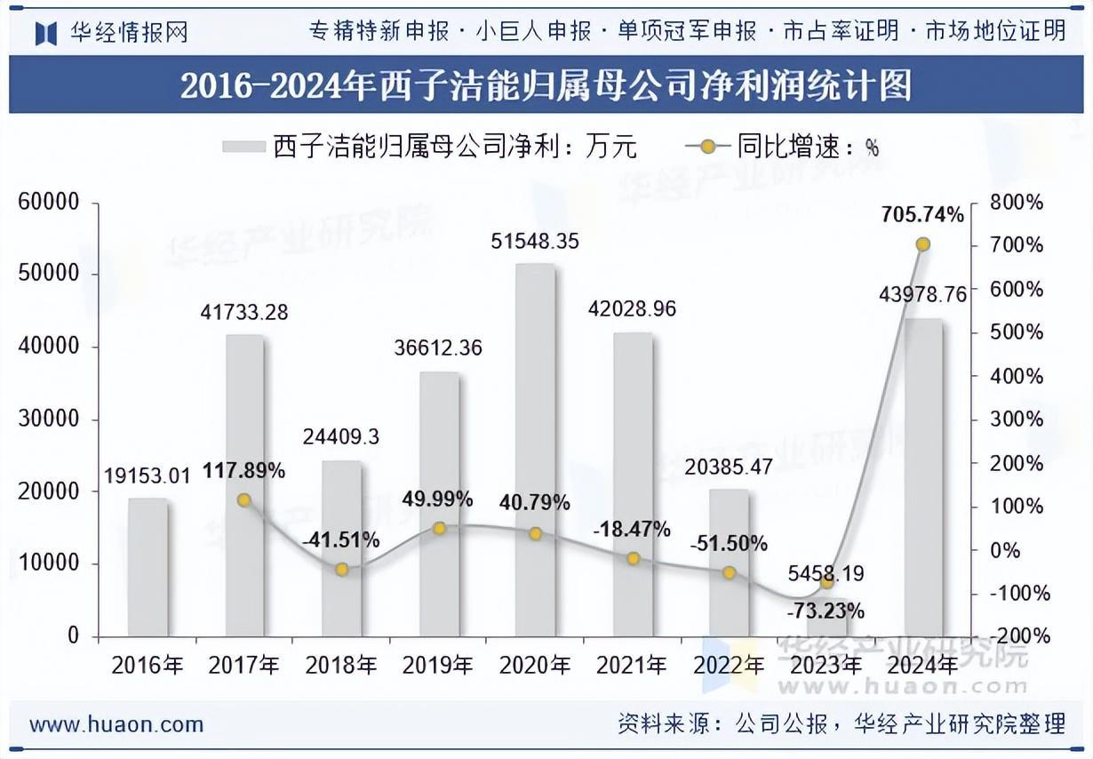 2024年西子洁能归母公司净利润为43978.76万元,与上年同期相比增加了38520.57万元,同比增长705.74%。