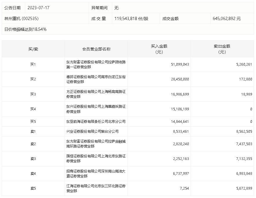 具体来看,东方财富证券拉萨团结路第一证券营业部、德邦证券南京白龙江东街证券营业部分别买入5109.90万元、2845.00万元;兴业证券烟台分公司、东方财富证券拉萨金融城南环路证券营业部分别卖出856.25万元、743.75万元。