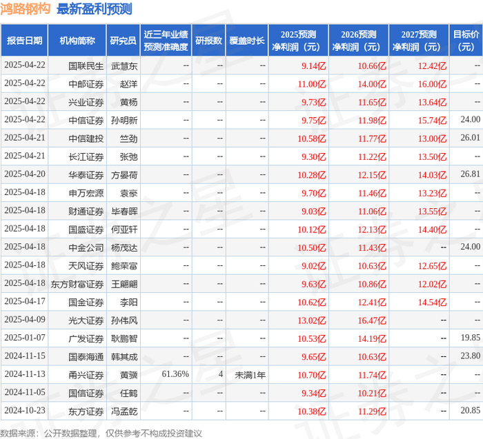 以下是详细的盈利预测信息:
