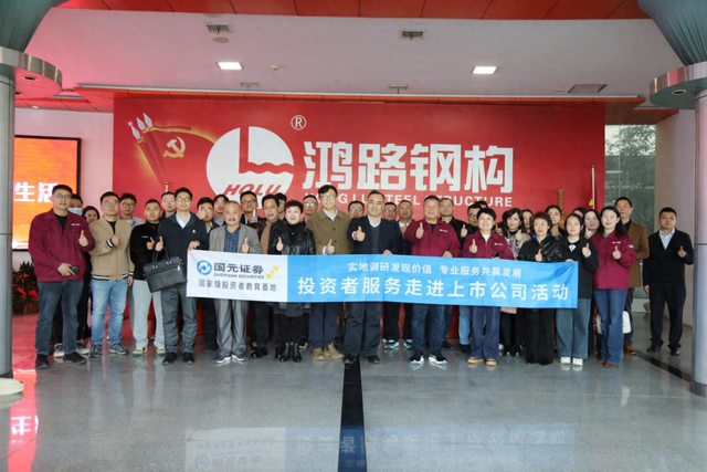 11月12日,安徽广播电视台与国元证券投资者教育基地、安徽鸿路钢结构(集团)股份有限公司联合举办的“踔厉奋发新征程,投教服务再出发”主题投教活动成功举办。众多投资者走进上市公司鸿路钢构(股票代码:002541),通过实地参观和面对面交流,深入了解了该上市公司的发展历程与投资价值。