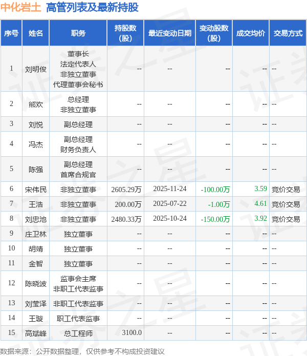 中化岩土近半年内的董监高及核心技术人员增减持详情如下: