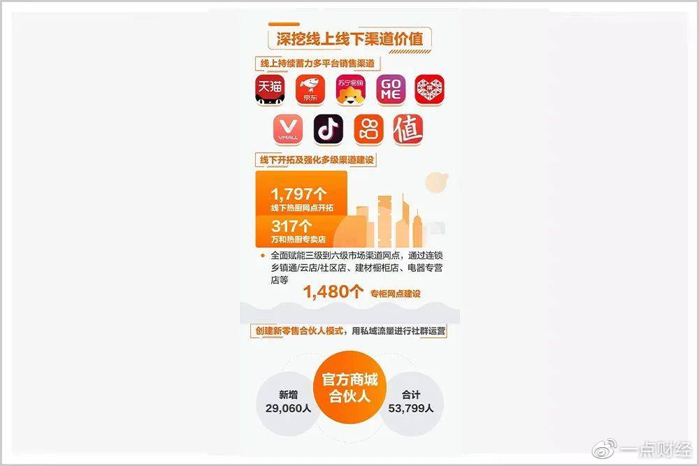 万和方面在回答投资者提问时表示,目前的网建策略是一二级城市市场大力拓展苏宁、京东五星等KA、地标门店、家装建材等终端零售网点,三四级下沉市场全力进驻京东专卖店、零售云、天猫优品等新零售渠道、专卖店等。
