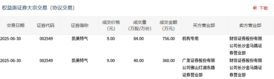 凯美特气今日大宗交易折价成交124万股,成交额1116万元