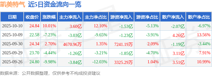 10月10日的资金流向数据方面,主力资金净流入3.6亿元,占总成交额12.1%,游资资金净流出1.53亿元,占总成交额5.13%,散户资金净流出2.07亿元,占总成交额6.97%。