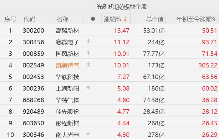 A股异动丨光刻胶概念股逆势上涨,凯美特气涨停