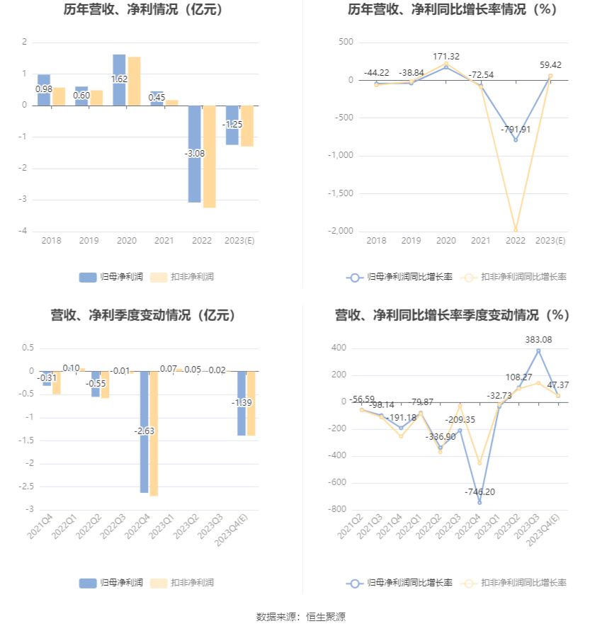 中证智能财讯 尚荣医疗(002551)1月26日晚间披露2023年度业绩预告,预计2023年归母净利润亏损1亿元至1.5亿元,上年同期亏损3.08亿元;扣非净利润亏损1.05亿元至1.55亿元,上年同期亏损3.25亿元;基本每股收益-0.118元/股至-0.178元/股。以1月26日收盘价计算,尚荣医疗目前市盈率(TTM)约为-21.23倍至-31.85倍,市净率(LF)约1.15倍,市销率(TTM)约2.54倍。