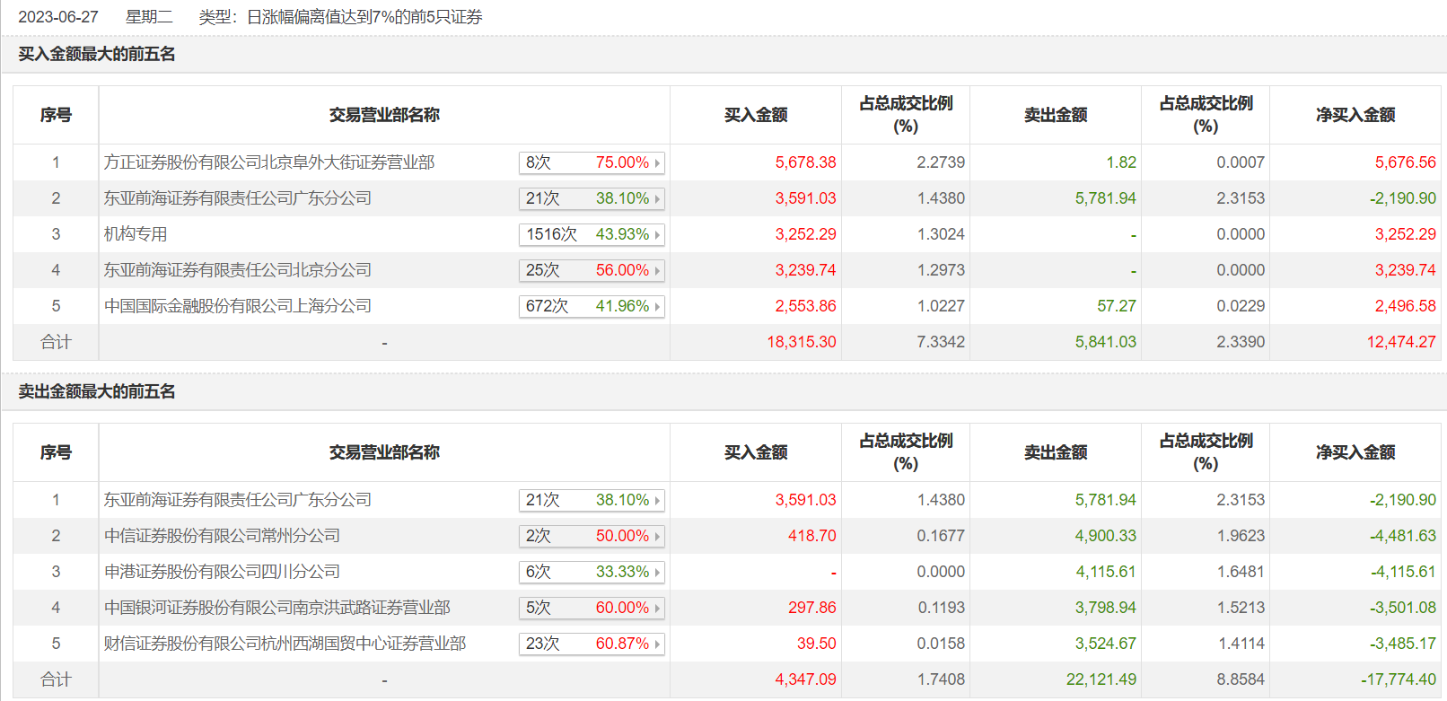 具体来看,机构合计净买入3252.29万元。此外,方正证券北京阜外大街证券营业部、东亚前海证券广东分公司分别买入5678.38万元、3591.03万元;东亚前海证券广东分公司、中信证券常州分公司分别卖出5781.94万元、4900.33万元。